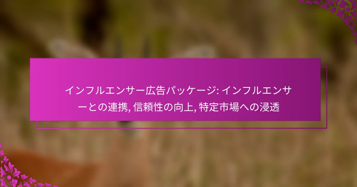 インフルエンサー広告パッケージの信頼性を高めるためには、適切なインフルエンサーの選定、ブランドとの相性評価、透明性の確保が重要です。これにより、消費者の信頼を得て、特定市場への浸透を促進できます。