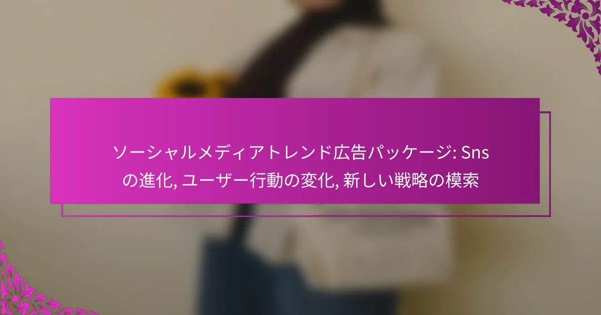 ソーシャルメディアトレンド広告パッケージを選ぶ際は、広告プラットフォームの特性、ターゲティングオプション、予算に基づく選択肢を考慮することが重要です。これにより、効果的な広告戦略を構築できます。