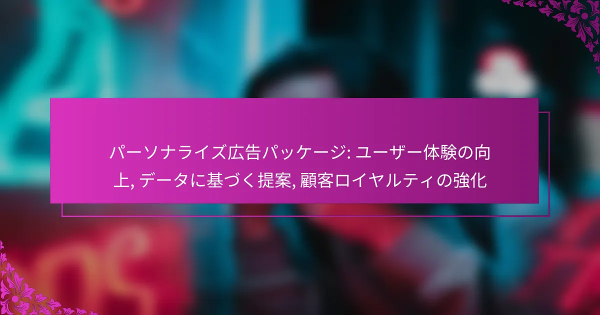 パーソナライズ広告パッケージは、ユーザーの行動や嗜好に基づいてカスタマイズされた広告を提供する仕組みです。このアプローチにより、広告の効果を高め、ユーザー体験を向上させることが可能になります。