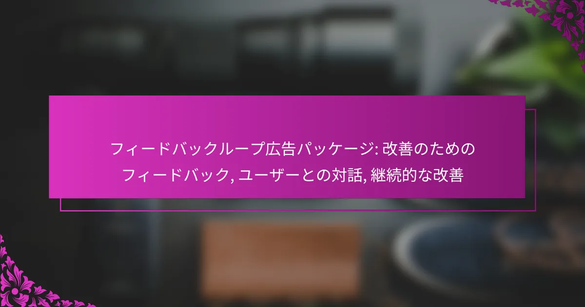 フィードバックループ広告パッケージは、ユーザーからのフィードバックを活用して広告戦略を継続的に改善するための効果的な手法です。この仕組みにより、ユーザーとの対話が促進され、広告の効果を最大化することが可能になります。