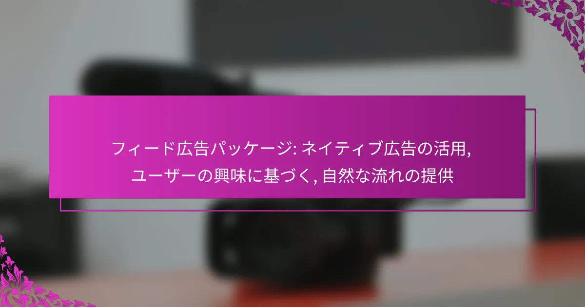 フィード広告パッケージを選ぶ際は、ターゲットユーザーの興味に基づいた広告の効果を最大化することが重要です。適切なプロバイダーや価格モデルを理解し、契約条件を確認することで、より良い結果を得ることができます。