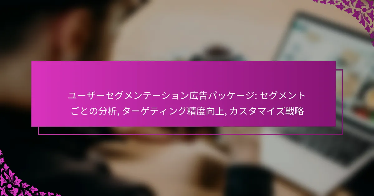 ユーザーセグメンテーション広告パッケージは、ターゲットオーディエンスを明確に定義し、効果的なマーケティング戦略を実現するための重要な手段です。成功事例としては、特定の消費者グループに対してカスタマイズされた広告キャンペーンが挙げられます。