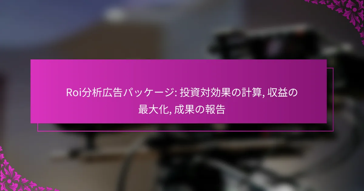 ROI分析広告パッケージは、広告投資の効果を測定し、収益を最大化するための強力なツールです。このパッケージを活用することで、広告キャンペーンの成果を評価し、改善点を見つけ出すことができます。投資対効果を向上させるためには、ターゲットオーディエンスの特定や広告クリエイティブの最適化が重要です。